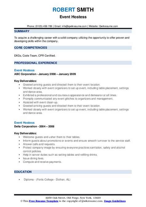 Event Hostess Resume Sample from resumebest.netlify.app