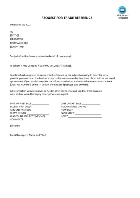 Ready to ask for a reference? 10 best performing credit email (letter) templates to onboard customers smoothly in 2024. Here are 10 reference request email examples to ask. When you've applied for credit, you might need such a reference from another creditor, so a letter to request a credit reference might be what it takes to get that new loan approved.